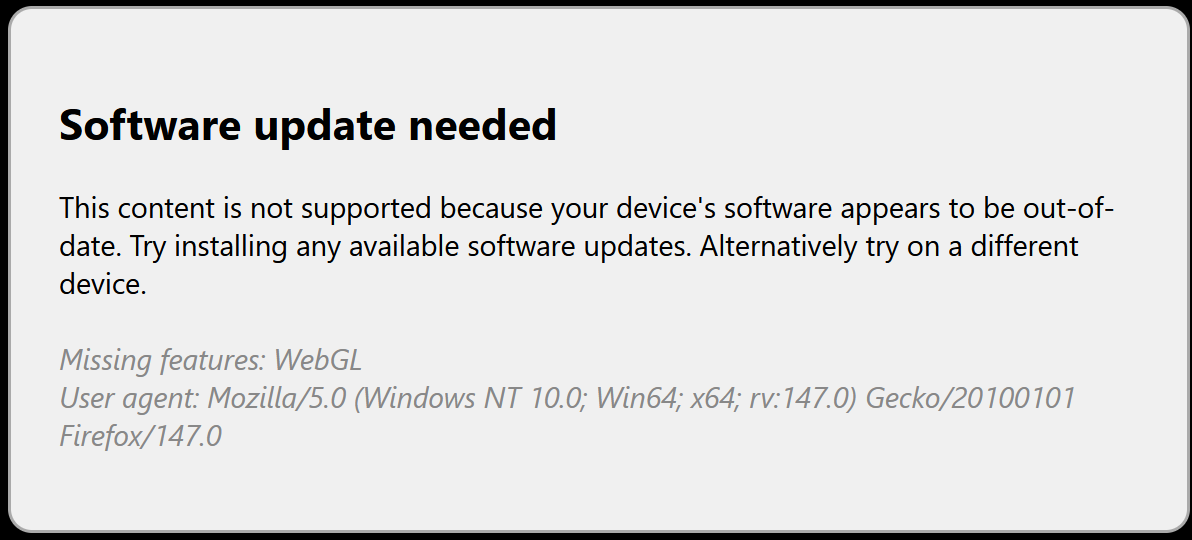 "This content is not supported because your device's software appears to be out-of-date. Try installing any available software updates. Alternatively try on a different device."